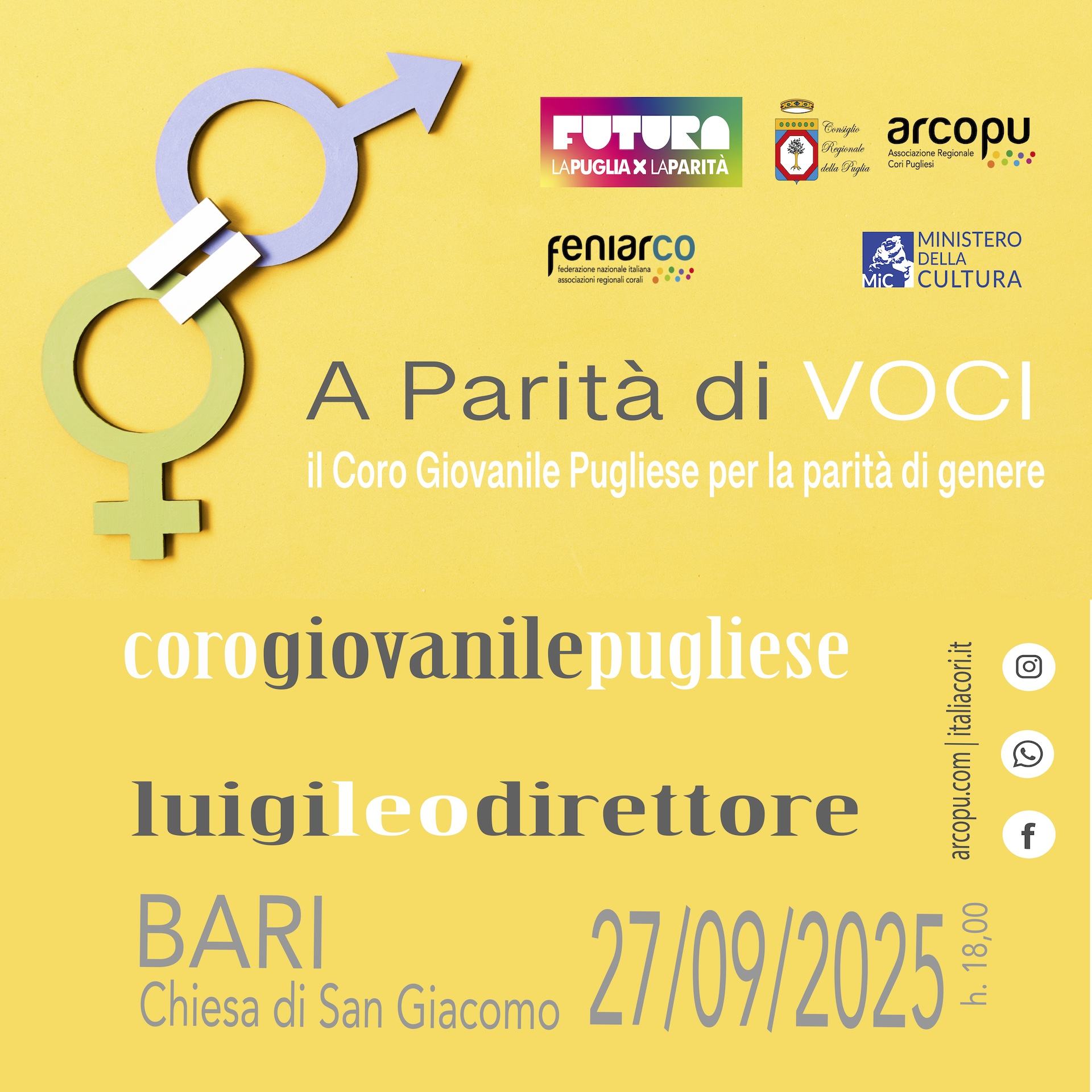 Il progetto repertoriale che ARCoPu presenta con la partecipazione del Coro Giovanile Pugliese diretto da Luigi Leo è intitolato “A Parità di voci, il Coro Giovanile Pugliese per l’uguaglianza di genere” ed ha l’intento di sensibilizzare i giovani sulla parità di genere attraverso la musica.