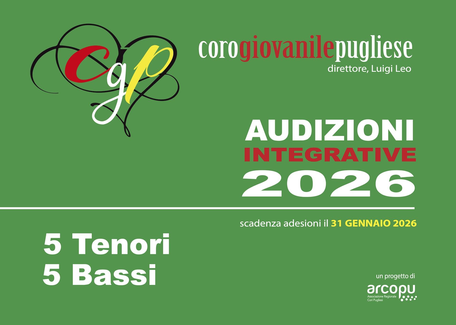 Il nuovo calendario prevede una serie di stage formativi, incontri musicali e concerti per un percorso che unisce formazione, produzione e scambi artistici. Nel primo semestre scolpiremo e disegneremo nei suoi dettagli il progetto repertoriale. A giugno vivremo insieme la Summer Choral Day, una giornata in Valle d’Itria nella quale coniugheremo formazione, sole, piscina, grigliate, giochi e voglia di stare insieme. Inoltre il progetto 2026 è inserito all’interno del progetto nazionale CHORAL NE(x)TWORK, formazioni e crescita per una rete corale attiva e sostenibile che ci porterà a fine anno a vivere una grande esperienza artistica e musicale insieme agli altri cori giovanili regionali fuori dalla Puglia in maniera simile all’esperienza vissuta in Toscana (2021) e in Friuli Venezia Giulia (2023). Inoltre metteremo a disposizione delle borse di studio 2026 per dei progetti speciali in collaborazione con Matera in Musica. Tutto questo e molto altro ancora, ma vi diremo ancora di più nel prosieguo del nostro viaggio musicale.